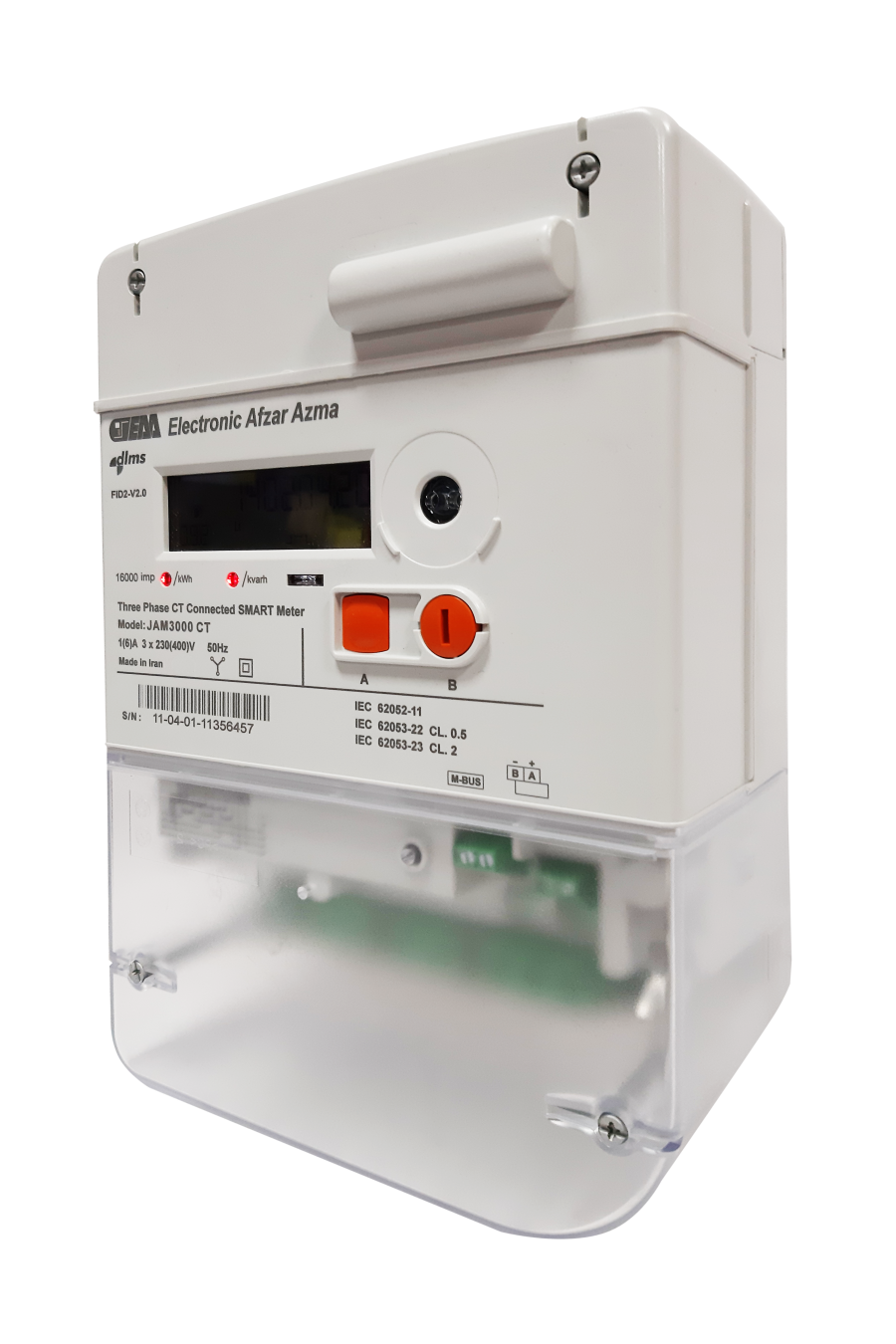 کنتور مدل "JAM3000CT" یک کنتور هوشمند سه فاز با اتصال ثانویه است که بر اساس استانداردهای طرح فهام ۱ طراحی و تولید شده است. این کنتور عمدتاً در مراکز صنعتی و کارخانههایی با مصرف بالا و جریان الکتریکی زیاد که از کابلهای برق عبور میکند، مورد استفاده قرار میگیرد. یکی از ویژگیهای برجسته این کنتور، طراحی ماژولار بخش مخابرات آن است که امکان نصب ماژولهای GPRS ،G3 یا PRIME PLC را برای ارتقا و ارتباطات پیشرفته فراهم میسازد.